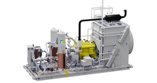 Desarrollados para instalaciones en centrales térmicas, campos petroleros y plantas industriales. Pueden manejar rangos de presión de entrada de 1 bar hasta 75 bar y presión de salida de 2 hasta 200 bar. Cuentan también con la opción para instalar motores a gas o motores eléctricos. Los sistemas de compresión de proceso Aspro poseen recipientes de acuerdo con el código ASME VIII. DIV.1 y cañerías de acuerdo con el código ASME B31.3.